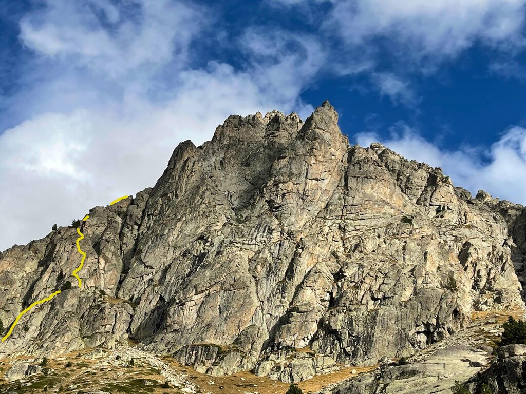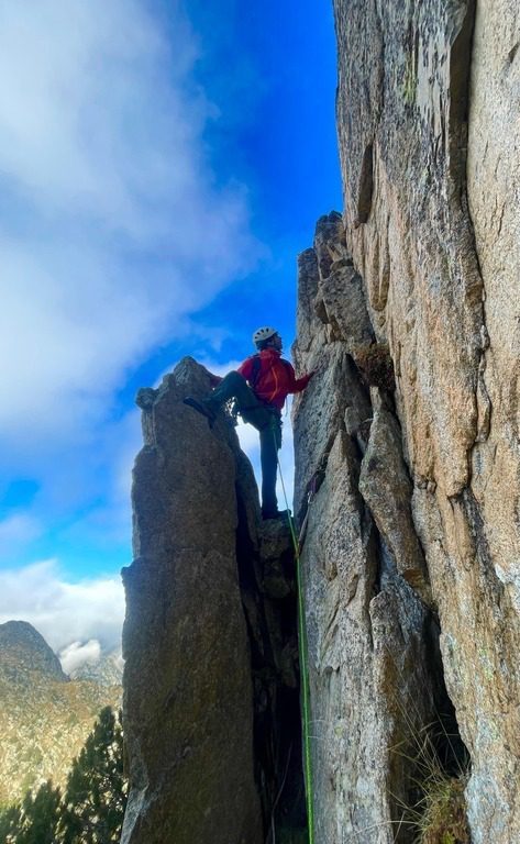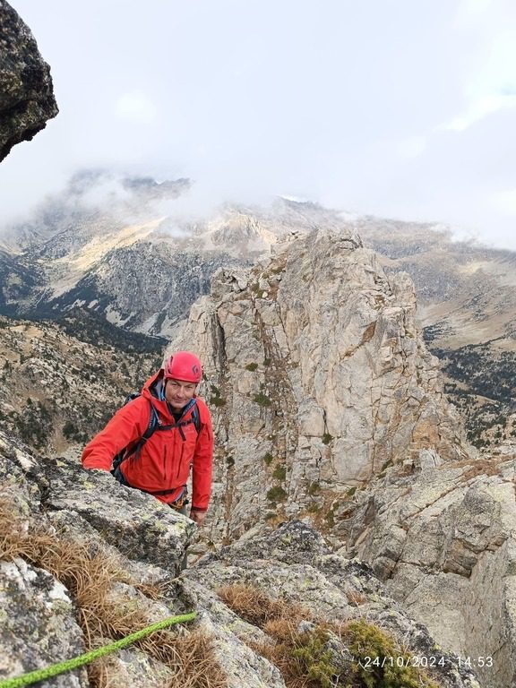 Este otoño, hice junto a Jerome, la cresta del Tossal de la Montanyeta (2.771), que más que una cresta es una combinación de vía larga (por su dificultad de V+) y cresta.