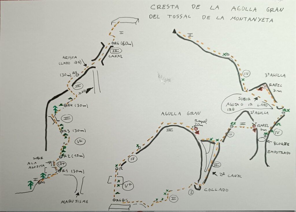 Si subimos a la Agulla gran, tendremos que hacer un rapel de 20 m, para enlazar la cresta.