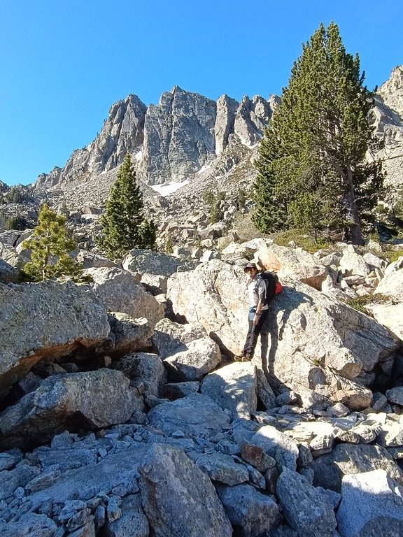 Lo que es importante en los dos casos, es buscar el pie de pared, y caminar por la base de la pared, para evitar el terreno e grandes bloques que hay en el fondo de valle